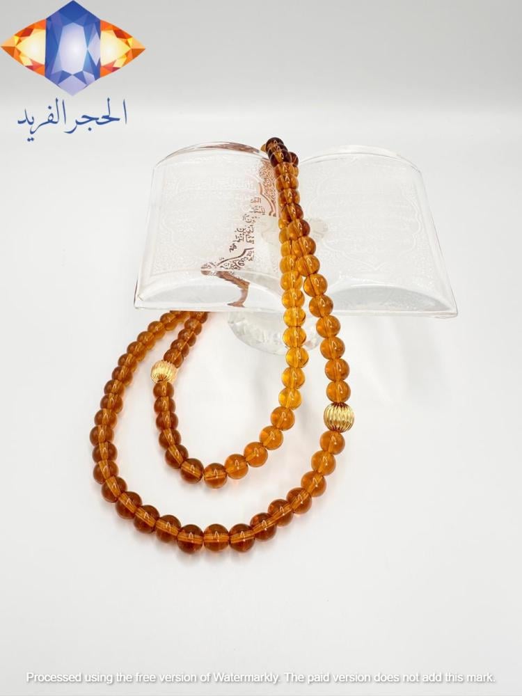*حجر الكهرمان العسلي الطبيعي الكريم الفاخر في السبحه الذكيه , السبحه مكونه من 99 حبه مقسمه الي ثلاث اقسام حجم الحجر 8ملم ووزن 90 جرام ويمكن لبسها كسلسال في الرقبه او اساور في اليد او استخدامها في التسبيح