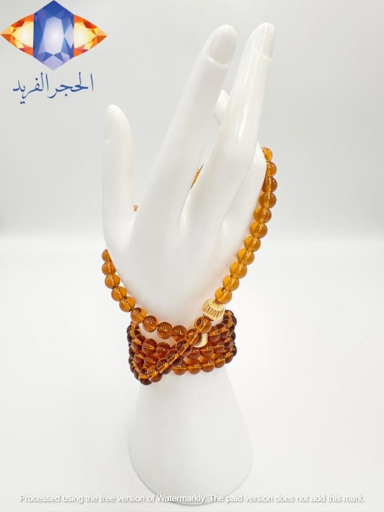 - تمتع بجمال وروعة حجر الكهرمان العسلي الفاخر في سبحة الكهرمان الذكية. يُعتبر حجر الكهرمان من أحجار الكريستال النادرة والفاخرة التي تتميز بلونه الدافئ وتأثيراته الإيجابية على الجسم والعقل.