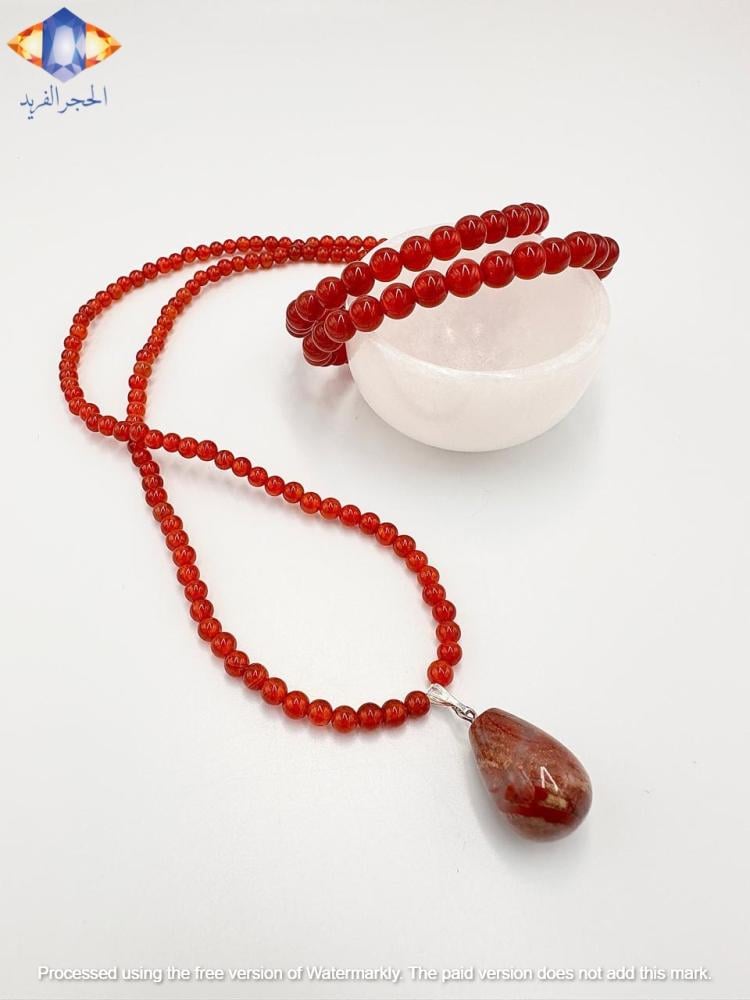 * عقد مع تعليقة من حجر العقيق الأحمر الطبيعي الكريم : رمز القوة والجاذبية *